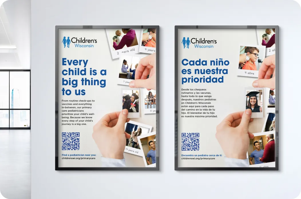 In collaboration with CMRignite and Children’s Wisconsin, the “Every Child Is a Big Thing” campaign elevated what it means to care for kids—physically, socially, and emotionally. Through compelling storytelling and thoughtful design, the creative positioned Children’s as a pediatric health system that prioritizes the whole child, reflecting their mission to ensure Wisconsin’s kids are the healthiest in the nation.